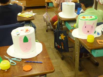 やまたか帽子ととんがり帽子の,台はとても上手に作れました。