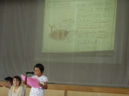 生活科の学習で生き物を飼ったことを3人の人が代表で発表してくれました。