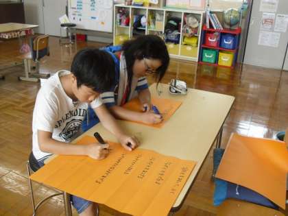 その言葉がよく伝わるかなども,6年生二人は考えながら,準備をしています。