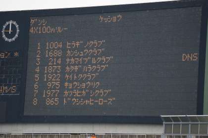 先週の「日清食品カップ」で決勝に進んだ6年生男子の4×100mリレーチームが,11日〜13日の3日間に渡り西京極陸上競技場で行われた「第69回京都陸上競技選手権大会」最終日の小学生リレーに招待されました。