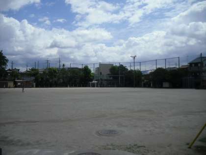 今日は台風一過の青空ものぞき,運動場では桂東学童保育所の子どもたちが元気に遊んでいます。