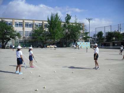 今日は朝からテニス部と陸上部が練習をしています。栽培委員会や飼育委員会の当番の子や夏休みの観察日記を書きに来ている子もいました。