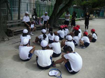 テニス部では,体育振興会のコーチの方が長年関わってくださっているため,社会人になった教え子も来てくれています。