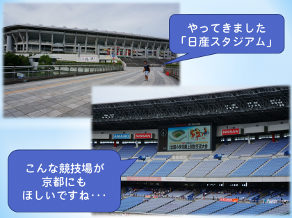 京都府選手団は,前日から京都陸上競技協会の役員の皆さんのお世話で横浜入りしていました。桂東小学校の応援団は,始発の新幹線で日帰り弾丸ツアーの応援でした。