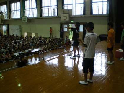 6年生の応援団長が,気合の入った自己紹介をしてくれた後,係の6年生の進行で,抽選会が行われました。