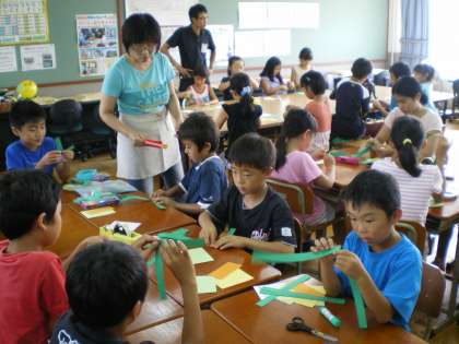 クローバーの会のみなさんがていねいに作り方を教えてくださったので,1年生の子どもたちも,とても楽しそうに作業をしていました。