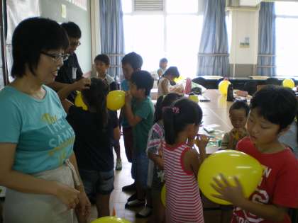 まず初めに,図書ボランティアのクローバーの会の方が読み聞かせをしてくださいました。その後,風船に飾りつけをしたりマジックで絵をかいたりして,「風船ぶたさん」を作りました。