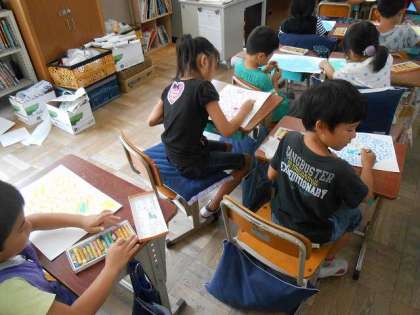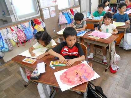 今日の図工の時間は、先日作った色紙をたまごにしていく、という活動に取り組みました。