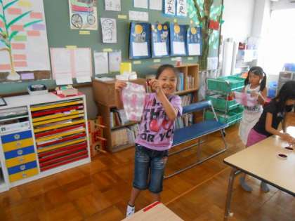まずは2組、次は1組、そして3組が1日にクラスの半分ずつ、5組の教室におじゃまして、楽しい物づくりを体験させてもらっています。