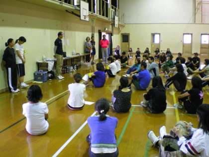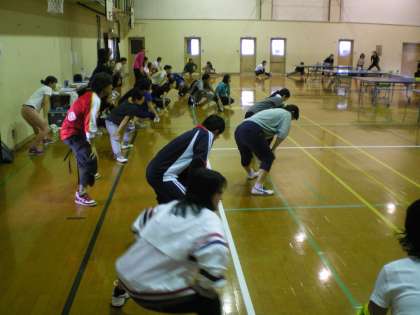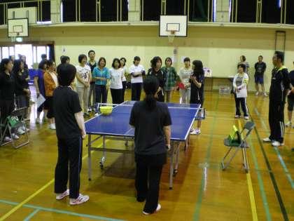 写真は,開会式・PTA卓球部の皆さんによるルール説明・準備体操の様子です。