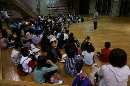 今日は屋上に設置してある天体望遠鏡での天体・星座観察の予定でしたが、雲が出てきたため、オリエンテーションホールでのバーチャル星座観察(DVD鑑賞)になりました。