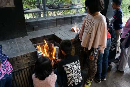 キャベツとソーセージを挟んだパンをアルミホイルで包み、牛乳パックの中に入れて火をつけます。