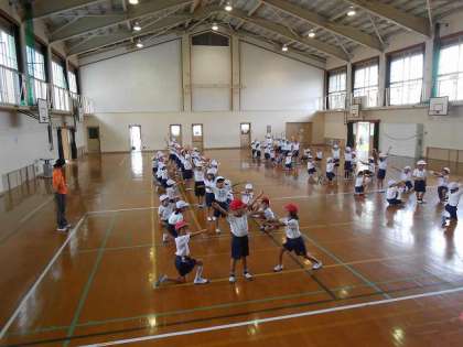 最後に体育館で「学園天国」の間奏部分の踊りを練習しました。