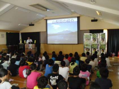 はじめに今日の主役である「ぶどう」の産地,山梨県の紹介がありました。
