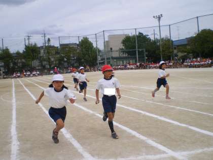 1年生最後の競技です。みんな疲れも見せず,力いっぱい走りました。みんな練習通り走れたでしょうか。お疲れ様でした!