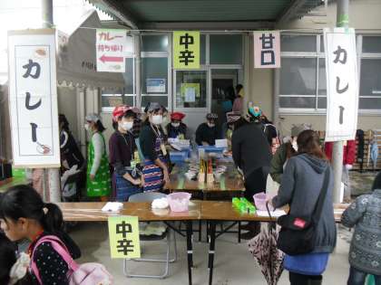 少年補導委員会は「ジュース・お茶」,地域女性会は「みたらし団子」,そして桂東PTAは「カレーライス」の担当です。