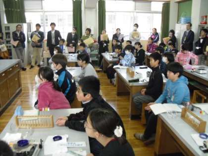 本日は,桂東小学校で支部の研究発表会がありました。6年2組が公開クラスとなり,理科の「水溶液の性質」について学習しました。4つの水溶液を簡単に区別しようという目標から,今まで学習してきた実験をグループで考え,導き出すことが出来ました。今までの学習をいかして,子どもたちはしっかりと考え,グループで話し合い学習していました。