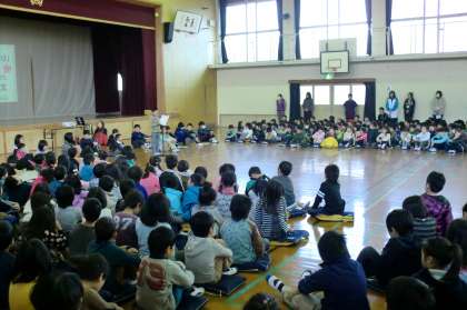 今日は人権作文集会で,前に校長先生が人権についての話をされたあと,その話を聞いて書いた作文を,各学年の代表が前で発表をしました。