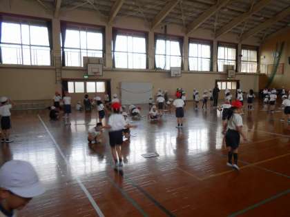 体育館で、3クラスそれぞれに練習しました。