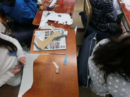 今回のテーマは動物です。画用紙を貼ったり,段ボールを貼ったり,思い思いの模様を作っていました。