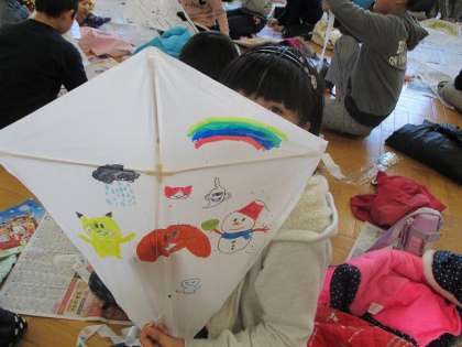 5年生も楽しそうに自分オリジナルの凧をつくっていました。