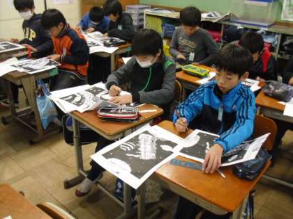 この作品は,校内の作品展で展示させていただきます。お楽しみに。