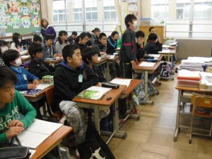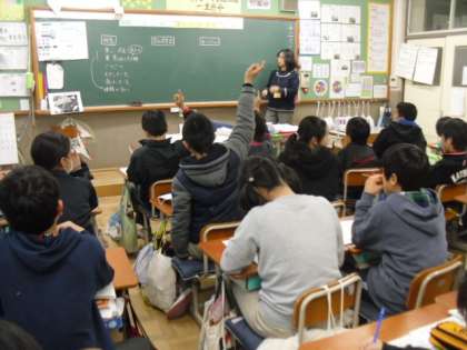 理科の授業は,土地のつくりとはたらきについて学習しています。前時で,火山灰を双眼実体顕微鏡で見ました。3種類の火山灰の違いを交流しています。
