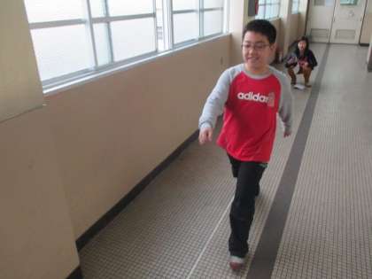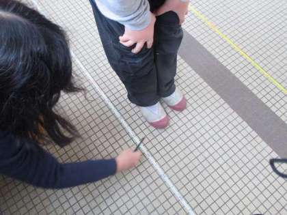 算数の授業で平均を使い,自分の歩幅を調べました。