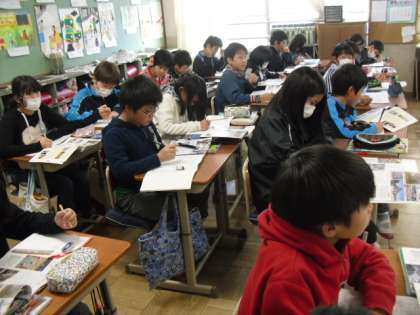 2組では社会の授業が行われていました。戦後から現在に至るまでの様子を調べていました。今年いっぱいで歴史の勉強はおわります。また復習もしておいてくださいね。