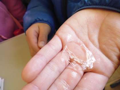 今日は,朝一番「先生!見て,見て!氷!氷!」と,嬉しそうに登校する子どもたちがたくさんいました。今日は寒かったので,校内にもたくさんの氷がはっていました。