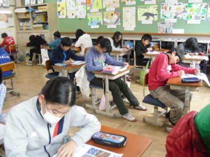 どのクラスもテストを頑張っていました。外は雪がふる中,教室では,黙々と問題を解く姿がとてもよく似合っていました。