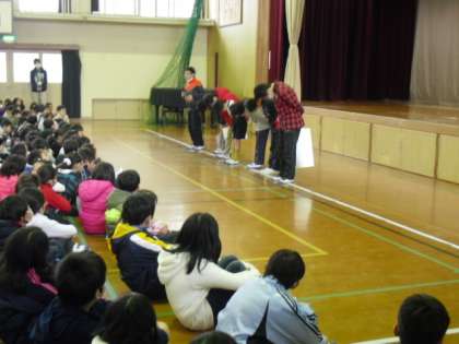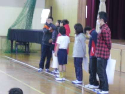 今日は児童朝会がありました。高学年は委員会からのお知らせで全校の前で発表します。それぞれの委員会で活躍している姿が見られました。