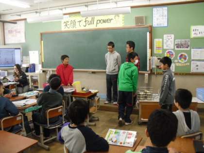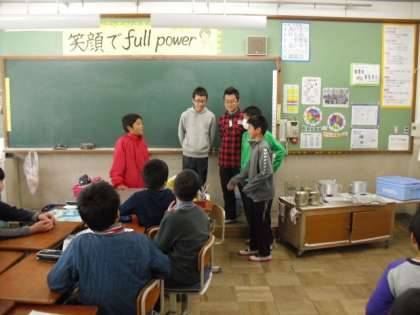 各クラスにお笑い係があるのですが,他のクラスへ出張公演をしてくれました。今回は,他のクラスのメンバーと発表してくれました。毎回腕を上げてくれています。