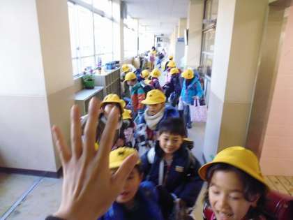 ハイタッチをしながら,しばしのお別れです。みんな楽しい冬休みを過ごしてくださいね。