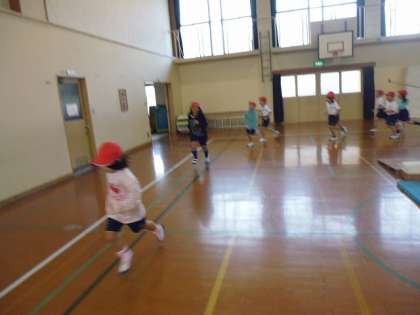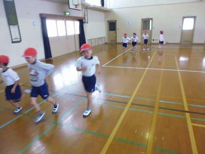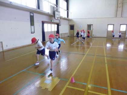 体育の時間に,マラソン大会に向けて練習をしています。少しずつ走る時間を延ばしています。当日は桂川河川敷を3キロメートル走ります。最後まで走りきれるように練習頑張りましょう!