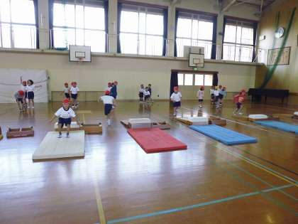 今日は,ふみこしやまたぎこしをやりました。ぴょんぴょん楽しかったです。次はどんな跳び方できるかな?振り返りカードもしっかり書きました。