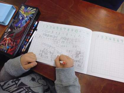 大きなかずの学習では,10のまとまりを意識して数えるようにしています。今日も10を意識して数える練習です。うまく10のまとまりをつくるのも技がいりますね。