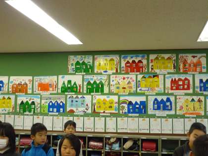はじめてカッターナイフを使って,作った作品「まどを ひらいて」が,できあがりました。自由参観日には,是非ご覧ください。窓の中に何が見えるかも楽しいですよ。