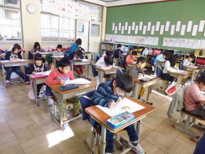 国語のテストをしました。テスト中,みんなとても集中しています。見直しまでしっかり頑張りましょう。