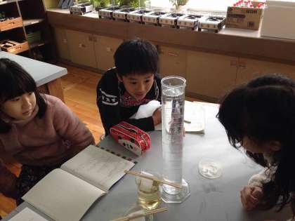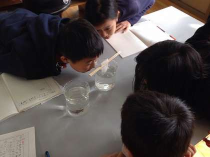 「溶けるって不思議!!」と子どもたちは驚きながら,観察していました。