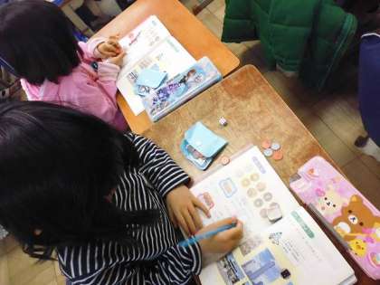 大きい数の計算で,今日はお金をつかって計算の学習をしました。大きい数になると計算が大変そうでしたが,お金を使って考えるとわかりやすかったようです。