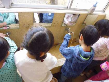 うがいはできないので,我慢をしながらコップを洗いに行きました。