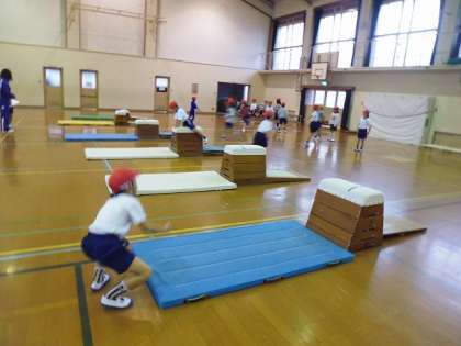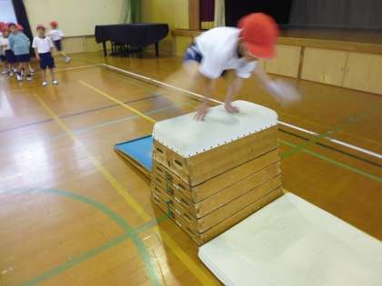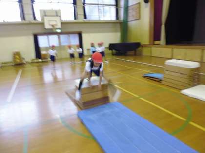 今日は,これまでにチャレンジしたいろいろなとび方から,自分の取り組みたいものを選び,チャレンジしました。いろいろな高さのとび箱も用意し,高いとび箱にもチャレンジしました。