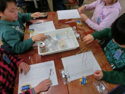 3年生は理科で「豆電球に明かりをつけよう」の単元を学習しています。