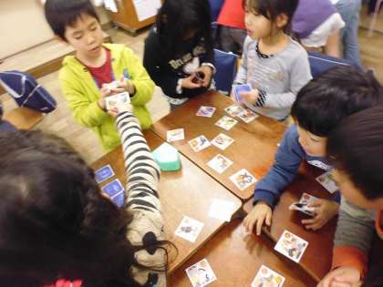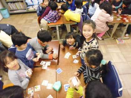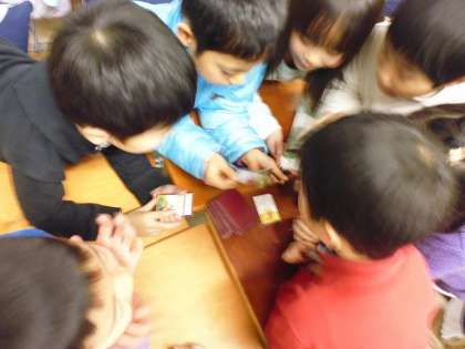 今日は1グループ,8〜10人でかるたとぼうずめくりに挑戦しました。