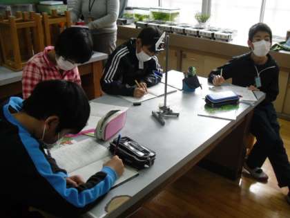 てこの働きを勉強しています。今日は実験用てこを使っておもりがかたむく,つりあうのはどういう条件かを調べました。