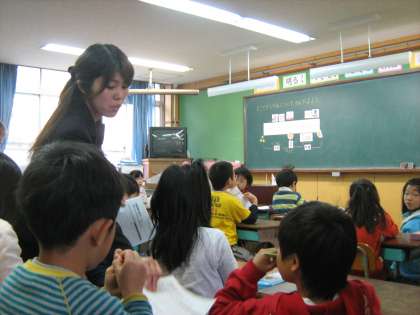 4月16日に本年度最初の参観日がありました。どの学年も、新しい先生と新しい教室で、やや緊張気味ながら頑張っていました。1年生は、ひらがなの練習ということで、「つ」を習いました。2年生は、「1日のせいかつ」で、午前や午後などの時間と時刻について学習しました。3年生は「九九の表とかけ算」で、九九のきまりを表を見ながら学習しました。
