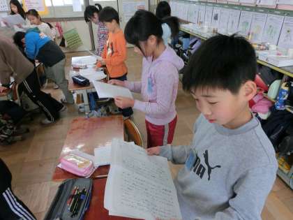 今日の国語の時間にこれまで書いてきた物語をみんなで読み合いました。