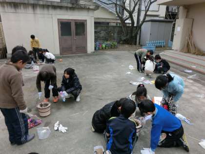 火加減が難しく,何度も何度も裏返して焼けているかどうか確かめていました。
