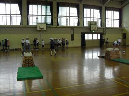 まずは自分がとべる高さ・とべる技に取り組んでいます。